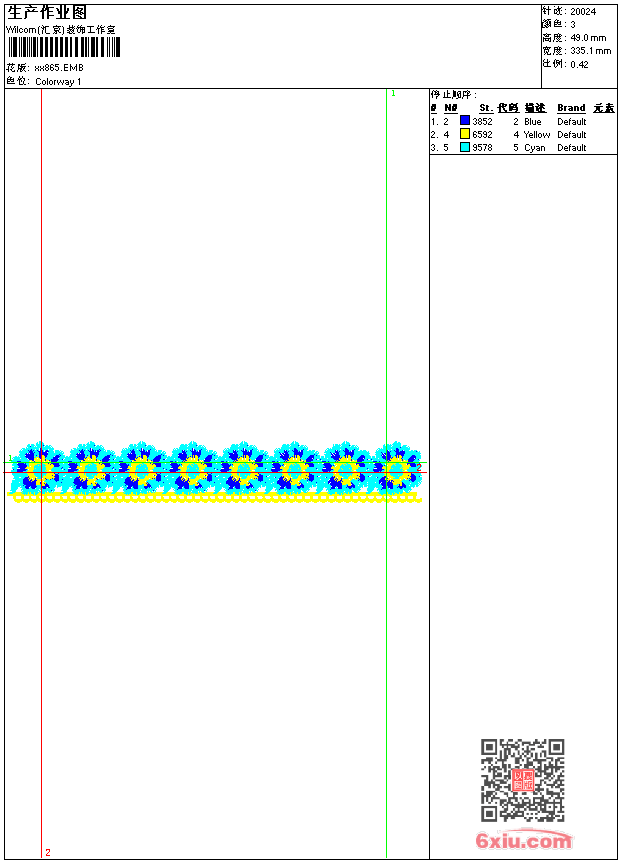 - emb花版参数: 大小:37.00 KB / 尺寸:335*49[毫米] / 针数:20024针 / 线色:3 / 格式:emb / 版本:9