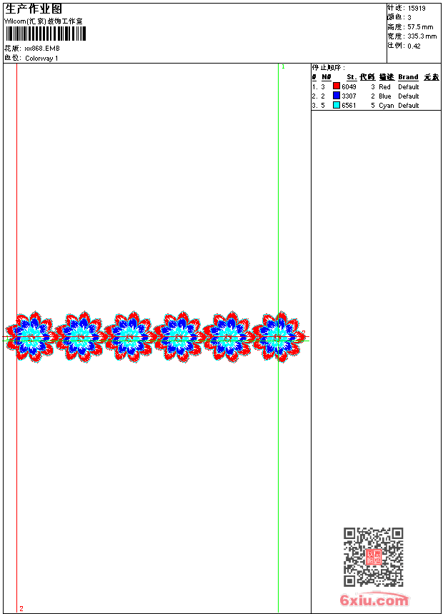 - emb花版参数: 大小:32.00 KB / 尺寸:335*57[毫米] / 针数:15919针 / 线色:3 / 格式:emb / 版本:9