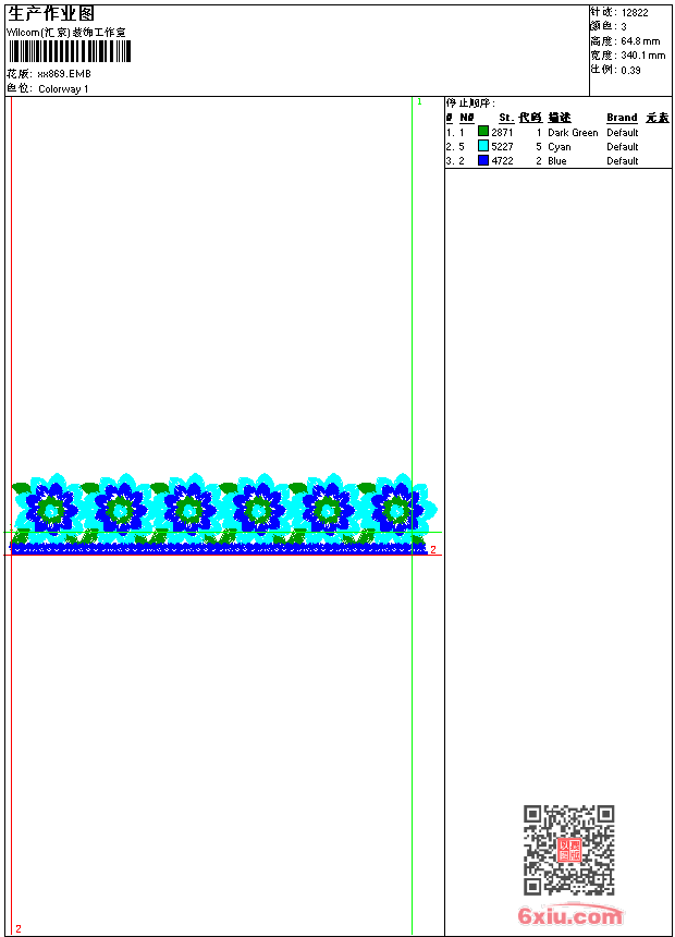 - emb花版参数: 大小:36.00 KB / 尺寸:340*65[毫米] / 针数:12822针 / 线色:3 / 格式:emb / 版本:9