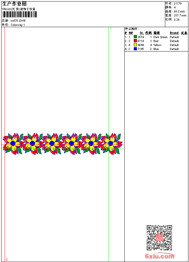 - emb花版参数: 大小:42.00 KB / 尺寸:338*60[毫米] / 针数:21179针 / 线色:4 / 格式:emb / 版本:9