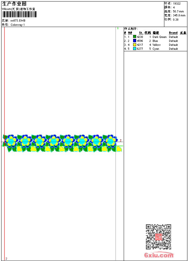 - emb花版参数: 大小:42.50 KB / 尺寸:346*51[毫米] / 针数:19322针 / 线色:4 / 格式:emb / 版本:9