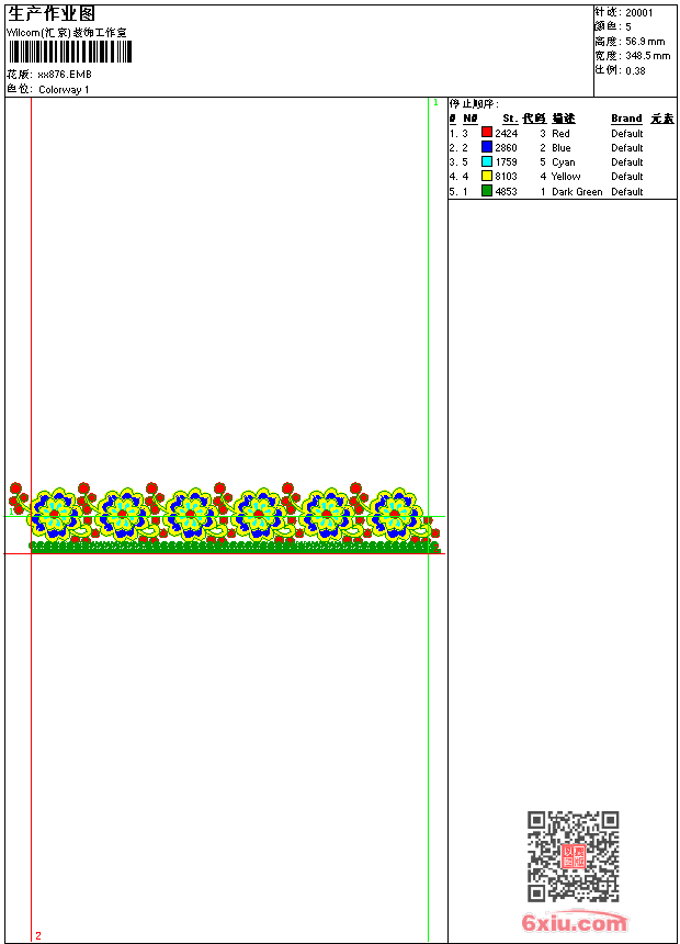 - emb花版参数: 大小:47.00 KB / 尺寸:349*57[毫米] / 针数:20001针 / 线色:5 / 格式:emb / 版本:9