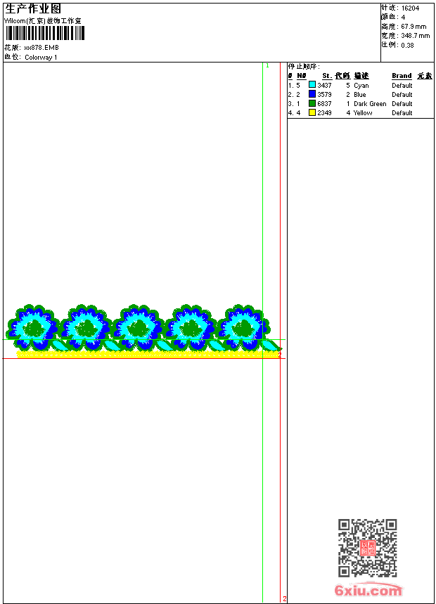 - emb花版参数: 大小:38.50 KB / 尺寸:349*68[毫米] / 针数:16204针 / 线色:4 / 格式:emb / 版本:9