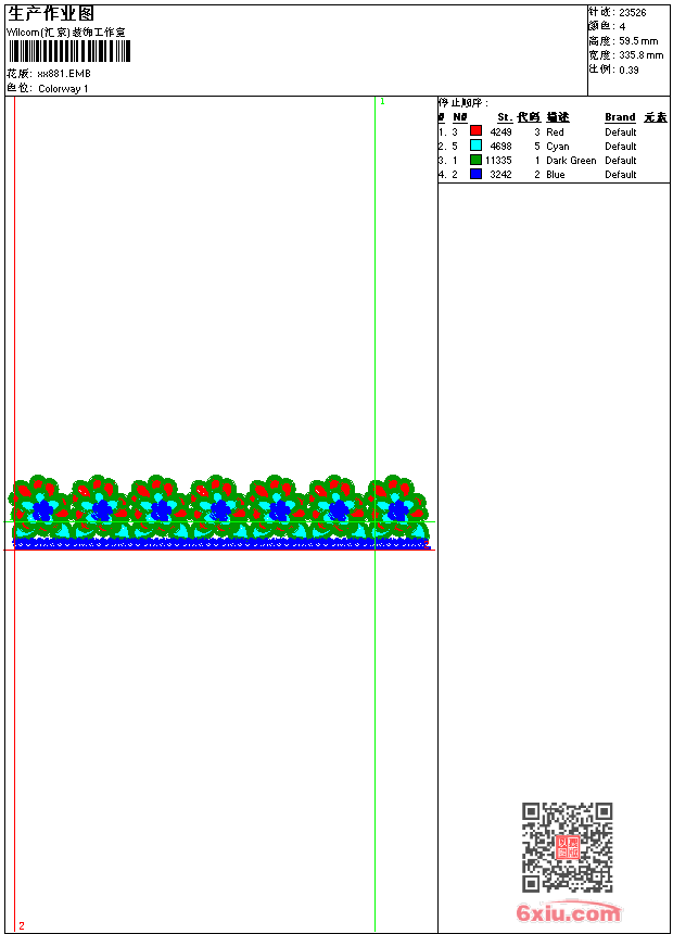 - emb花版参数: 大小:48.50 KB / 尺寸:336*60[毫米] / 针数:23526针 / 线色:4 / 格式:emb / 版本:9