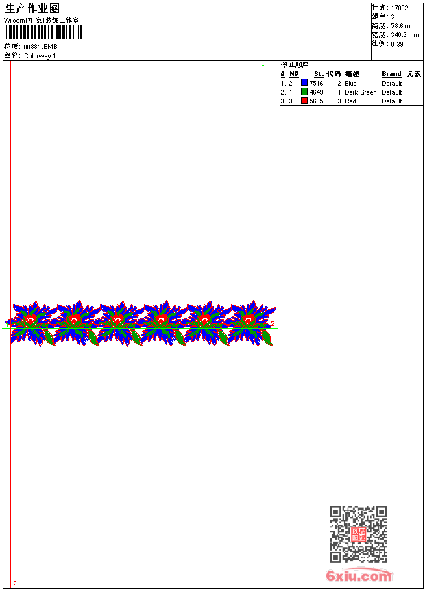 - emb花版参数: 大小:44.00 KB / 尺寸:340*59[毫米] / 针数:17832针 / 线色:3 / 格式:emb / 版本:9