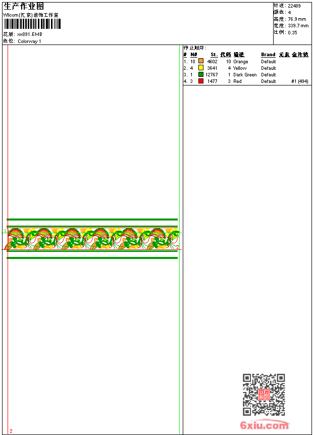 - emb花版参数: 大小:110.00 KB / 尺寸:340*77[毫米] / 针数:22489针 / 线色:4 / 格式:emb / 版本:9
