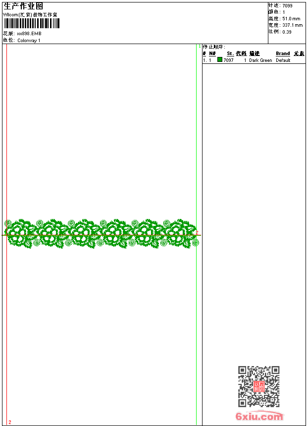 - emb花版参数: 大小:30.00 KB / 尺寸:337*51[毫米] / 针数:7099针 / 线色:1 / 格式:emb / 版本:9