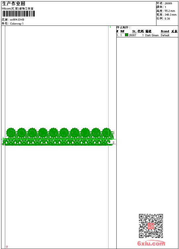 - emb花版参数: 大小:148.00 KB / 尺寸:348*55[毫米] / 针数:26089针 / 线色:1 / 格式:emb / 版本:9
