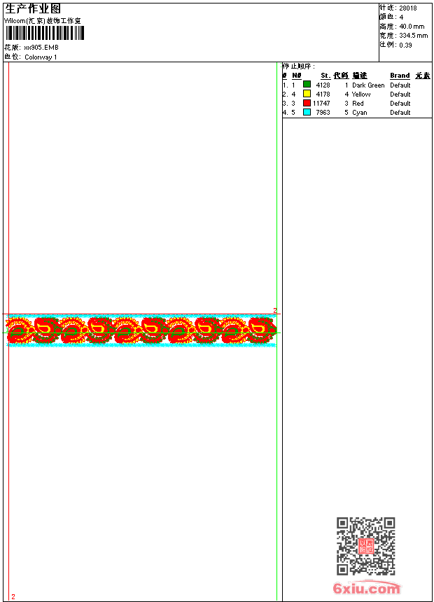 - emb花版参数: 大小:102.50 KB / 尺寸:334*40[毫米] / 针数:28018针 / 线色:4 / 格式:emb / 版本:9
