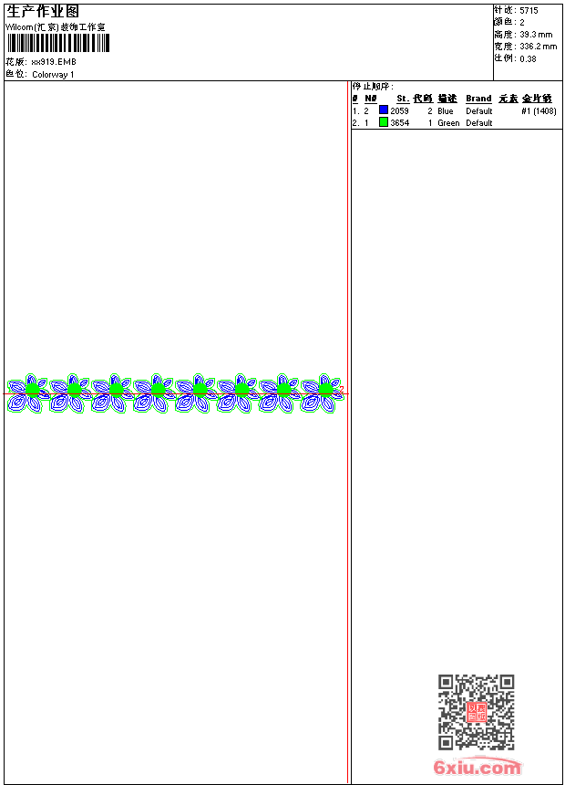 - emb花版参数: 大小:332.00 KB / 尺寸:336*39[毫米] / 针数:5715针 / 线色:2 / 格式:emb / 版本:9