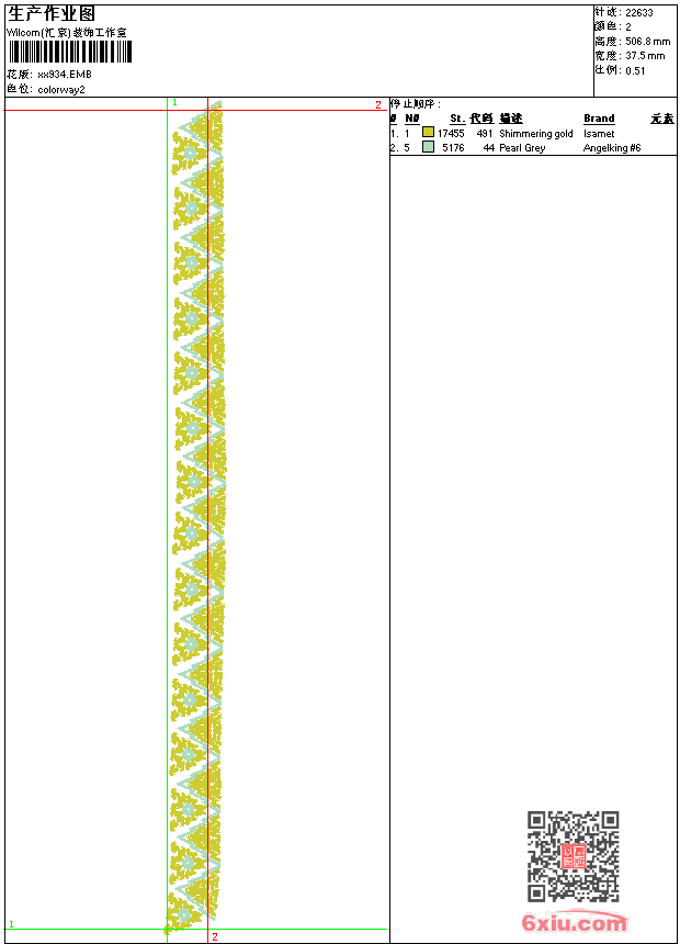 - emb花版参数: 大小:145.00 KB / 尺寸:38*507[毫米] / 针数:22633针 / 线色:2 / 格式:emb / 版本:9