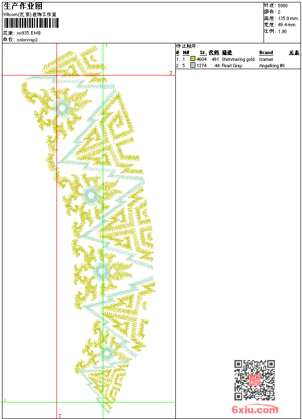 - emb花版参数: 大小:59.50 KB / 尺寸:49*135[毫米] / 针数:5980针 / 线色:2 / 格式:emb / 版本:9