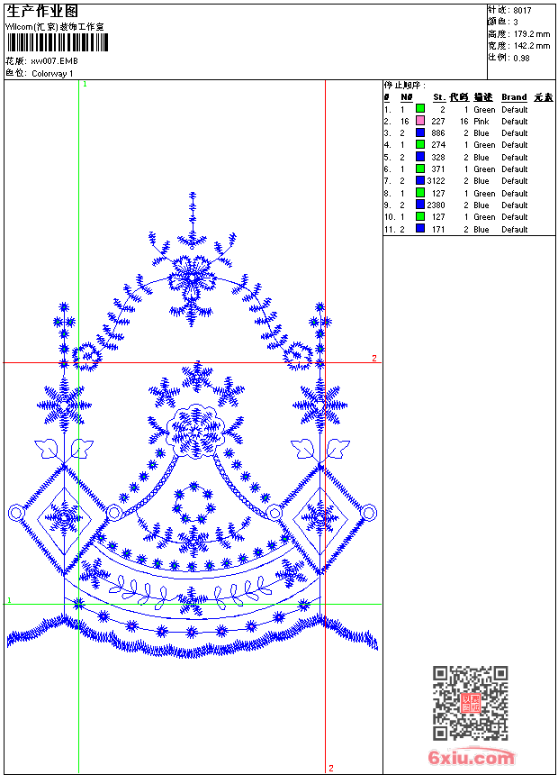 - emb花版参数: 大小:115.00 KB / 尺寸:142*179[毫米] / 针数:8017针 / 线色:3 / 格式:emb / 版本:9