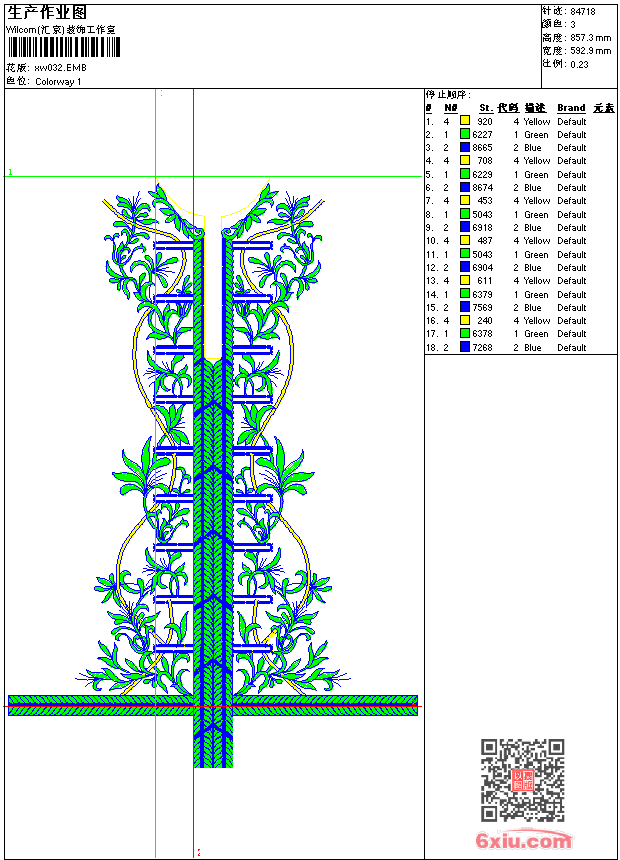 - emb花版参数: 大小:410.00 KB / 尺寸:593*857[毫米] / 针数:84718针 / 线色:3 / 格式:emb / 版本:9
