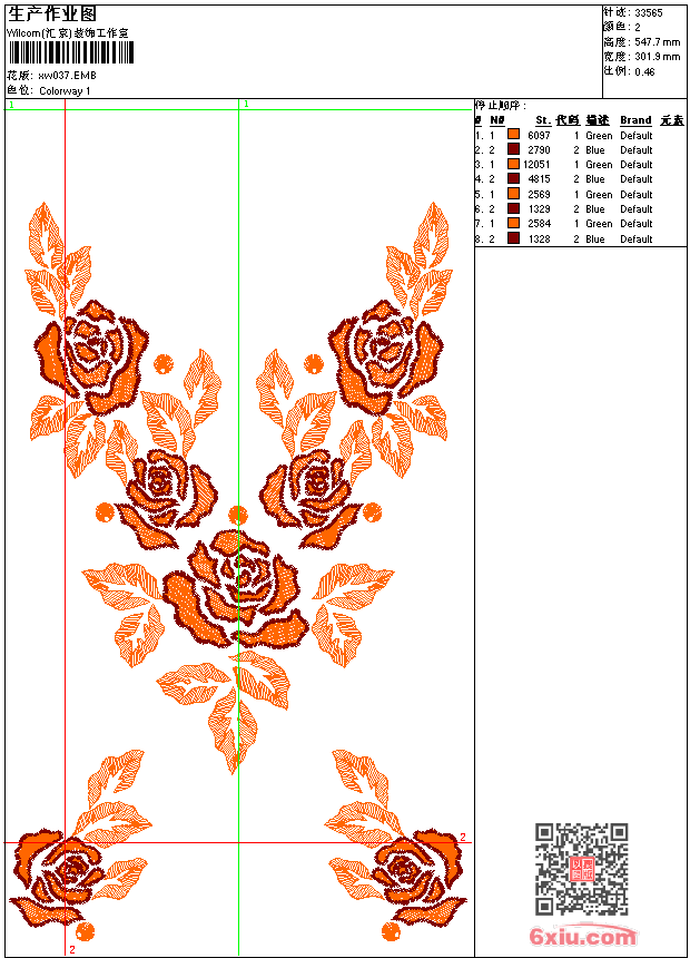 - emb花版参数: 大小:203.00 KB / 尺寸:302*548[毫米] / 针数:33565针 / 线色:2 / 格式:emb / 版本:9
