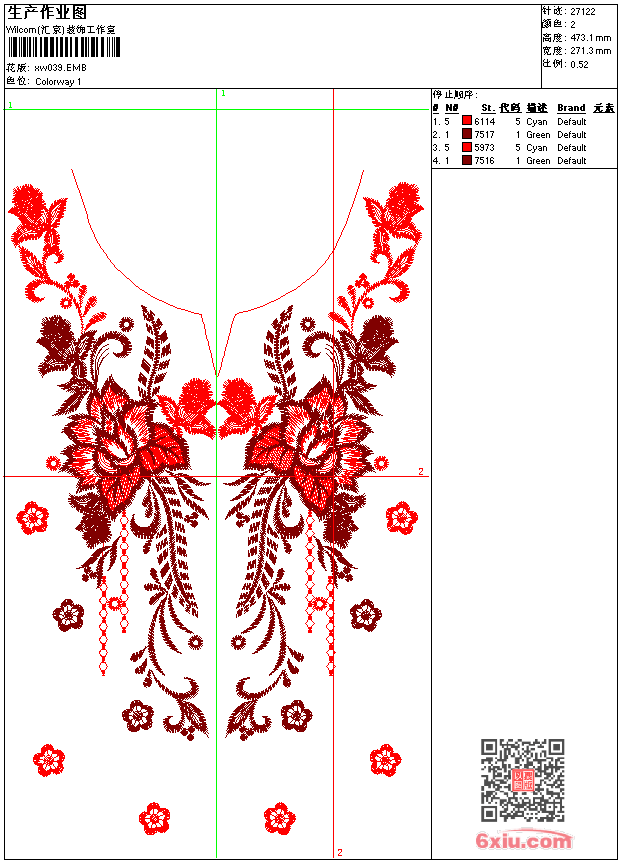 - emb花版参数: 大小:182.00 KB / 尺寸:271*473[毫米] / 针数:27122针 / 线色:2 / 格式:emb / 版本:9