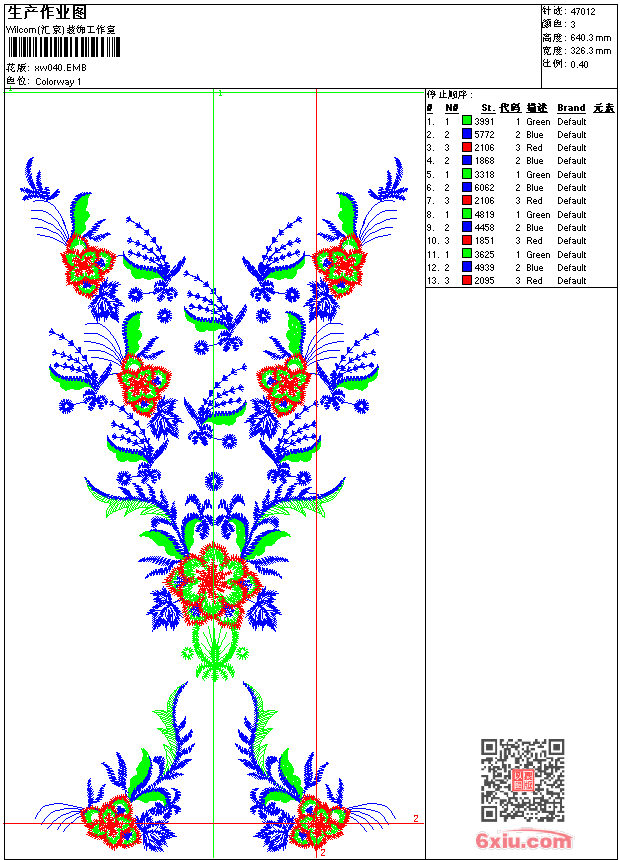 - emb花版参数: 大小:302.50 KB / 尺寸:326*640[毫米] / 针数:47012针 / 线色:3 / 格式:emb / 版本:9