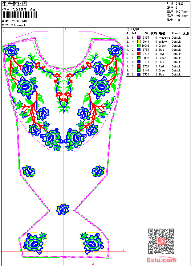 - emb花版参数: 大小:336.50 KB / 尺寸:406*764[毫米] / 针数:53620针 / 线色:5 / 格式:emb / 版本:9