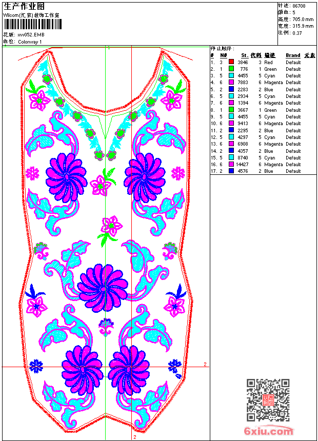 - emb花版参数: 大小:604.50 KB / 尺寸:316*705[毫米] / 针数:86708针 / 线色:5 / 格式:emb / 版本:9