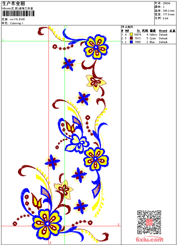 - emb花版参数: 大小:155.50 KB / 尺寸:177*399[毫米] / 针数:25694针 / 线色:3 / 格式:emb / 版本:9