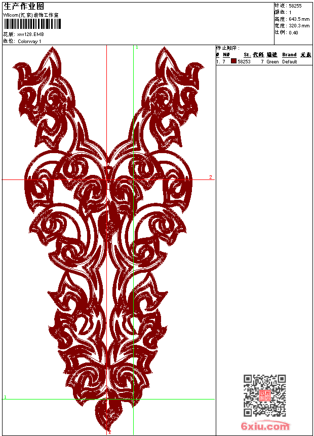 - emb花版参数: 大小:382.50 KB / 尺寸:320*644[毫米] / 针数:58255针 / 线色:1 / 格式:emb / 版本:9