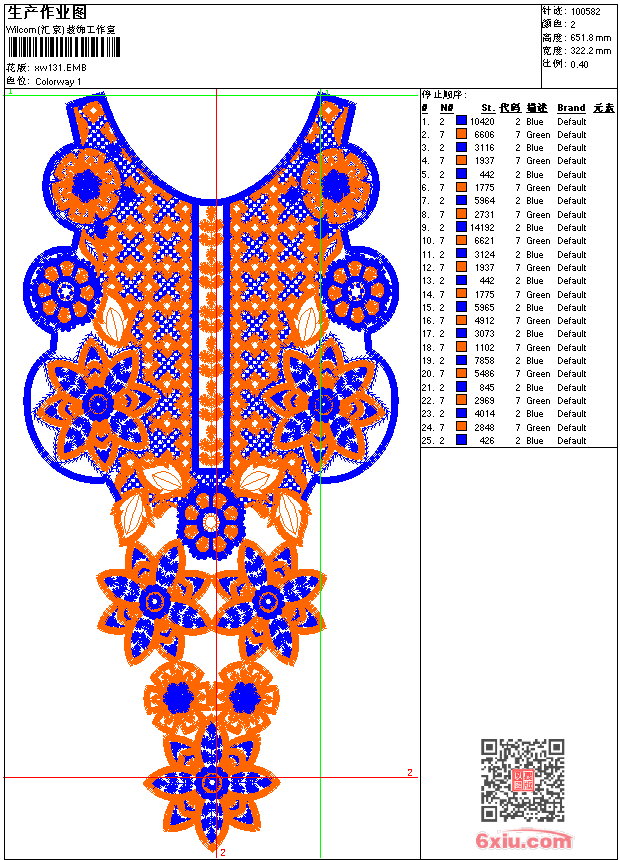 - emb花版参数: 大小:586.50 KB / 尺寸:322*652[毫米] / 针数:100582针 / 线色:2 / 格式:emb / 版本:9