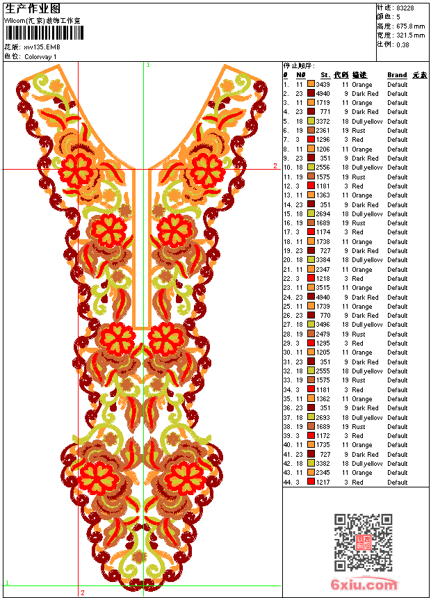 - emb花版参数: 大小:439.50 KB / 尺寸:321*676[毫米] / 针数:83228针 / 线色:5 / 格式:emb / 版本:9