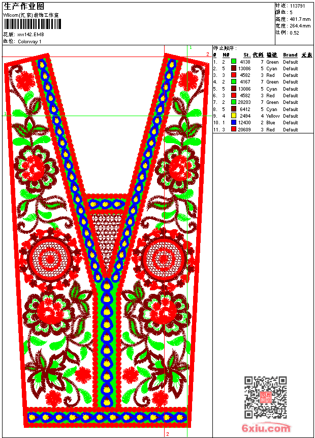 - emb花版参数: 大小:371.00 KB / 尺寸:264*482[毫米] / 针数:113791针 / 线色:5 / 格式:emb / 版本:9