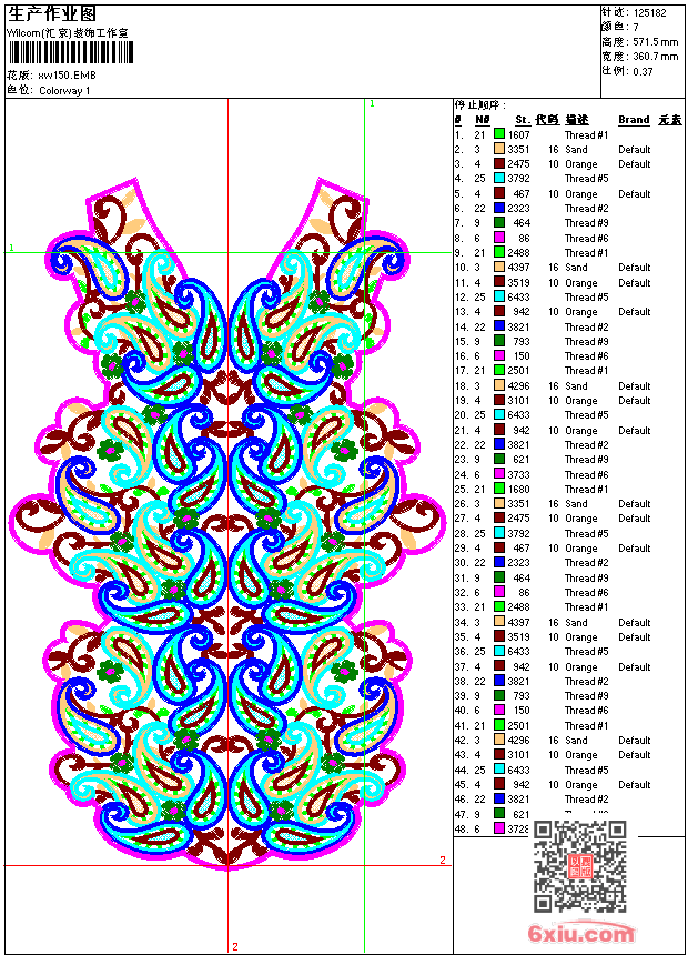 - emb花版参数: 大小:801.50 KB / 尺寸:361*571[毫米] / 针数:125182针 / 线色:7 / 格式:emb / 版本:9