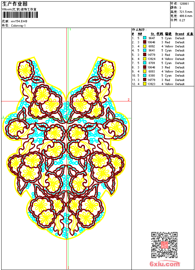 - emb花版参数: 大小:1.23 MB / 尺寸:500*722[毫米] / 针数:128861针 / 线色:3 / 格式:emb / 版本:9