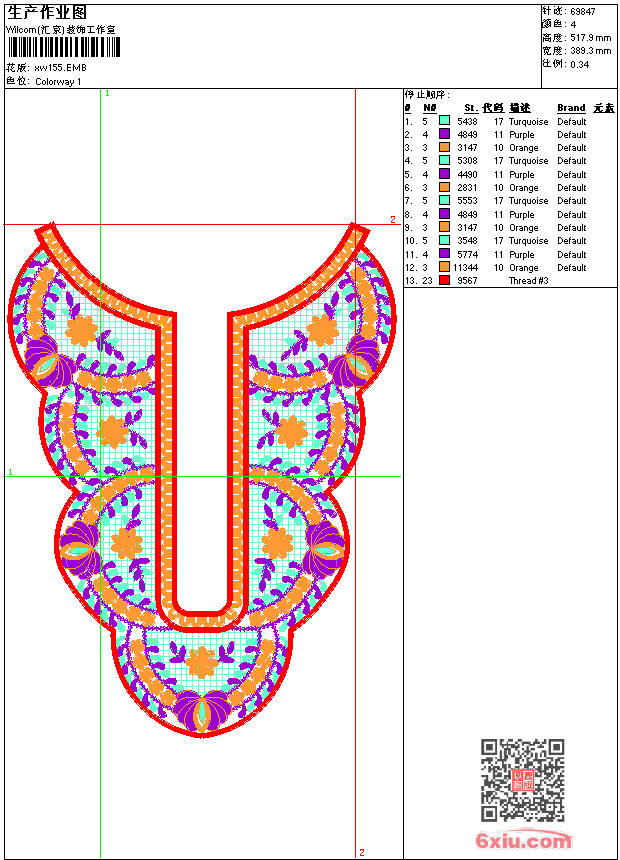 - emb花版参数: 大小:374.00 KB / 尺寸:389*518[毫米] / 针数:69847针 / 线色:4 / 格式:emb / 版本:9