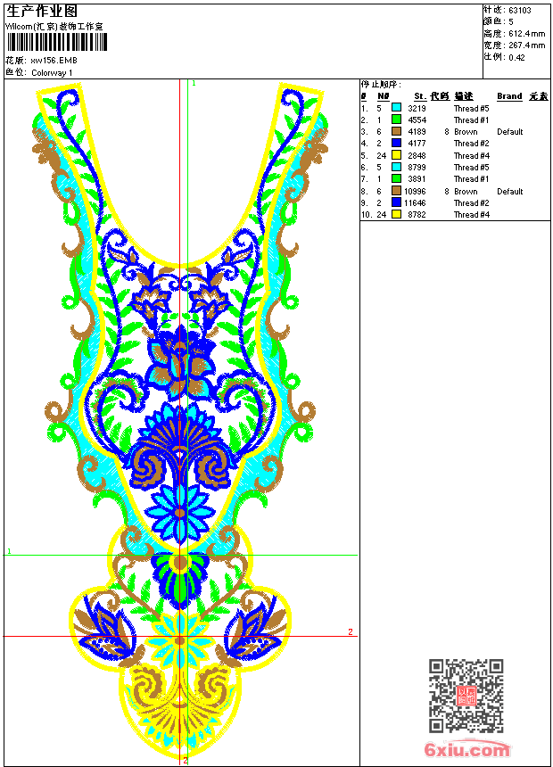 - emb花版参数: 大小:346.00 KB / 尺寸:267*612[毫米] / 针数:63103针 / 线色:5 / 格式:emb / 版本:9