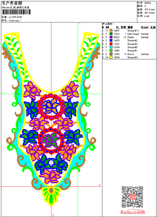 - emb花版参数: 大小:359.50 KB / 尺寸:267*478[毫米] / 针数:66009针 / 线色:9 / 格式:emb / 版本:9