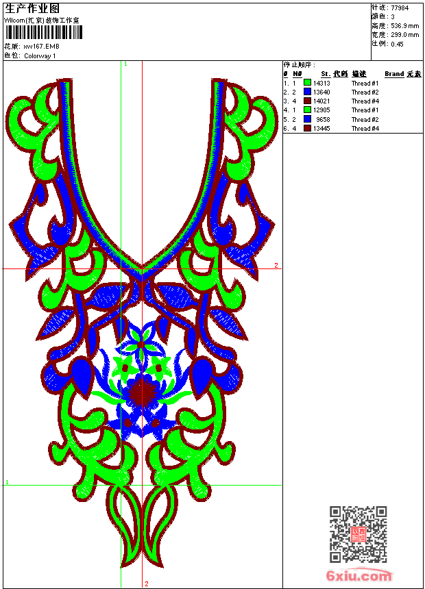 - emb花版参数: 大小:332.00 KB / 尺寸:299*537[毫米] / 针数:77984针 / 线色:3 / 格式:emb / 版本:9