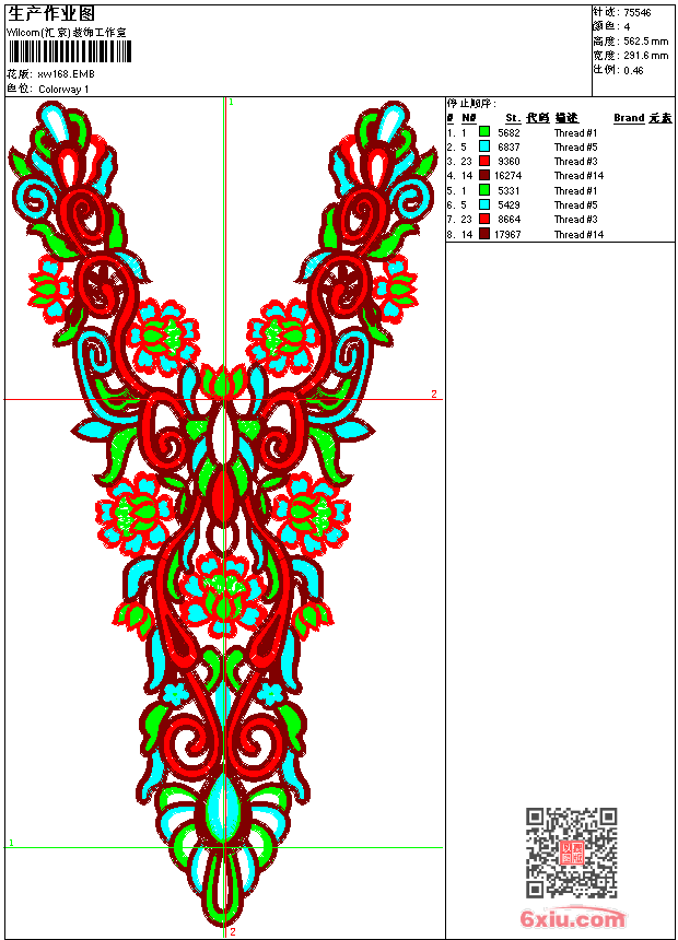 - emb花版参数: 大小:417.50 KB / 尺寸:292*562[毫米] / 针数:75546针 / 线色:4 / 格式:emb / 版本:9