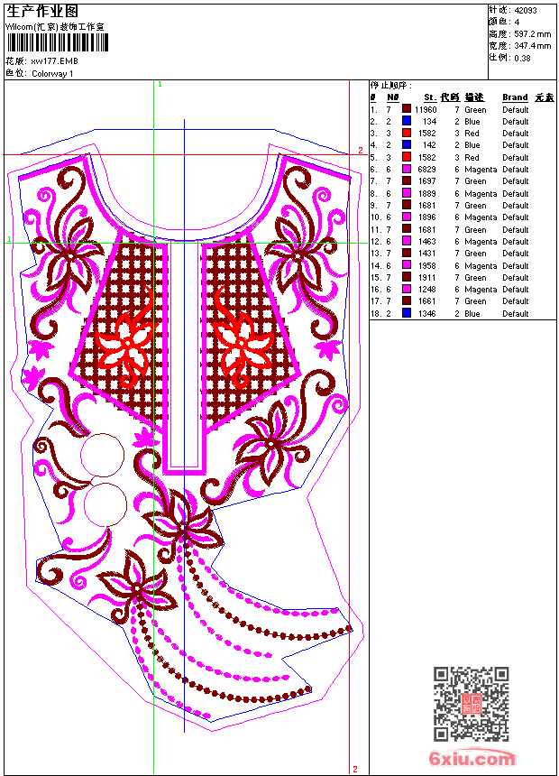 - emb花版参数: 大小:212.50 KB / 尺寸:347*597[毫米] / 针数:42093针 / 线色:4 / 格式:emb / 版本:9