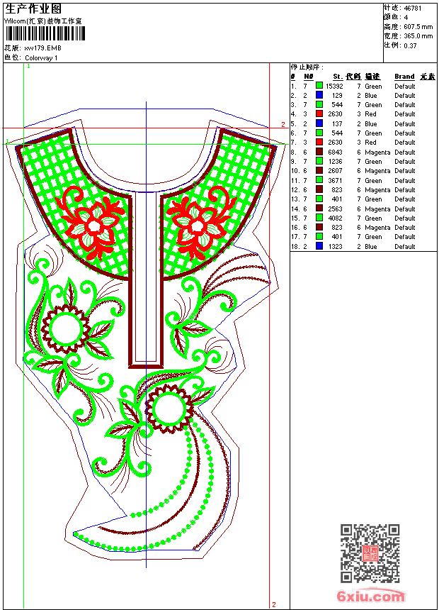 - emb花版参数: 大小:253.00 KB / 尺寸:365*607[毫米] / 针数:46781针 / 线色:4 / 格式:emb / 版本:9