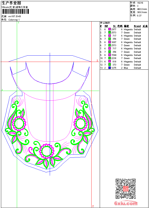 - emb花版参数: 大小:136.50 KB / 尺寸:370*468[毫米] / 针数:18216针 / 线色:3 / 格式:emb / 版本:9
