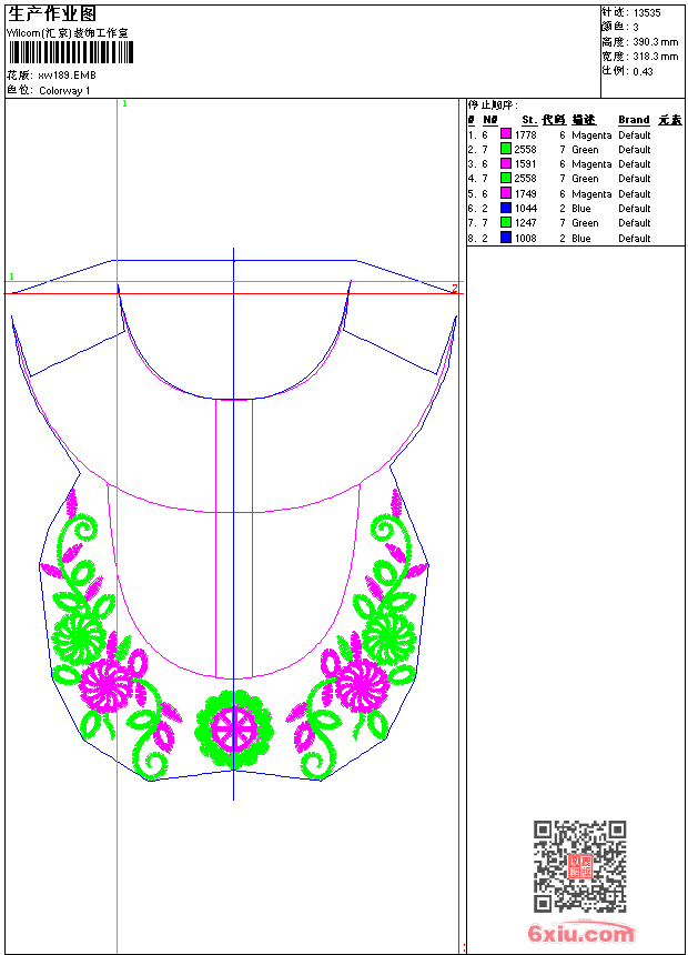 - emb花版参数: 大小:94.00 KB / 尺寸:318*390[毫米] / 针数:13535针 / 线色:3 / 格式:emb / 版本:9