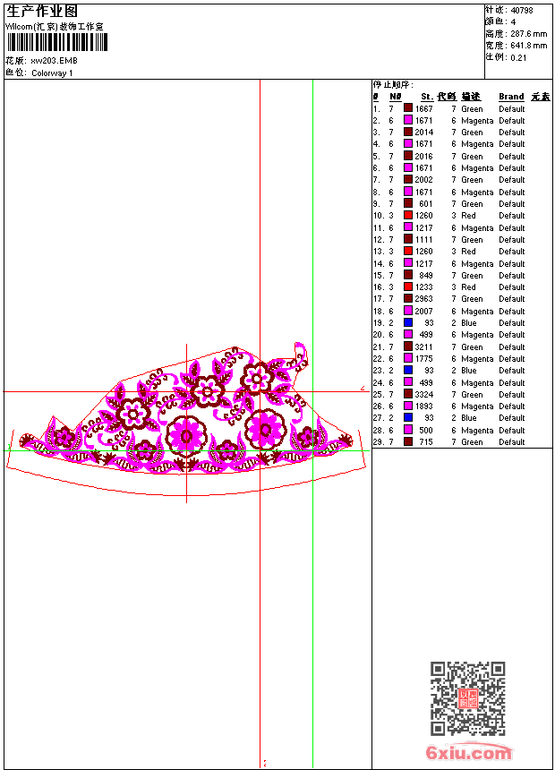 - emb花版参数: 大小:278.50 KB / 尺寸:642*288[毫米] / 针数:40798针 / 线色:4 / 格式:emb / 版本:9