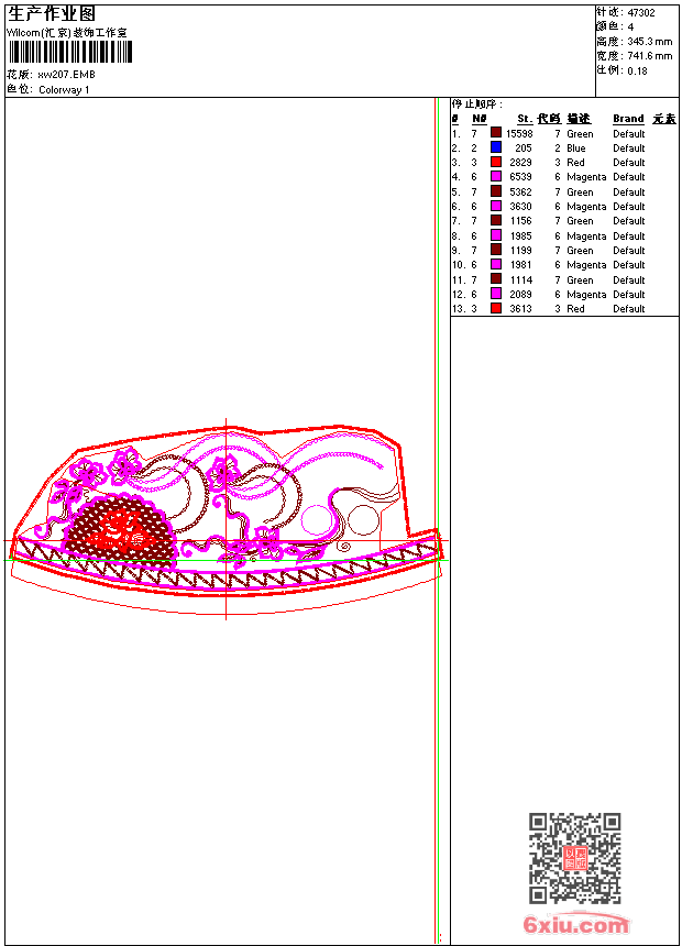 - emb花版参数: 大小:369.50 KB / 尺寸:742*345[毫米] / 针数:47302针 / 线色:4 / 格式:emb / 版本:9