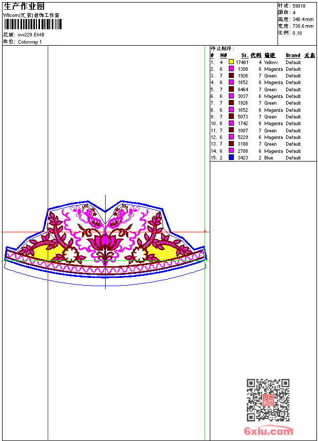 - emb花版参数: 大小:318.00 KB / 尺寸:739*340[毫米] / 针数:59818针 / 线色:4 / 格式:emb / 版本:9
