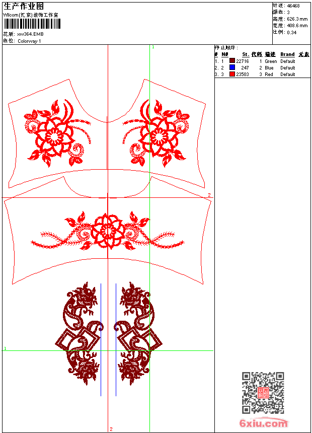 - emb花版参数: 大小:380.50 KB / 尺寸:409*626[毫米] / 针数:46468针 / 线色:3 / 格式:emb / 版本:9