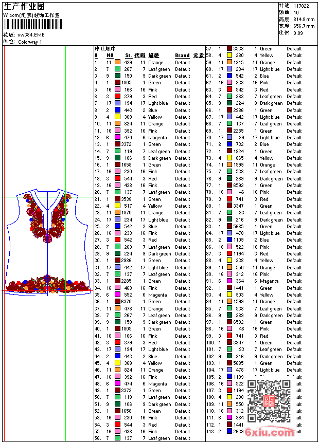 - emb花版参数: 大小:1.18 MB / 尺寸:657*815[毫米] / 针数:117022针 / 线色:10 / 格式:emb / 版本:9