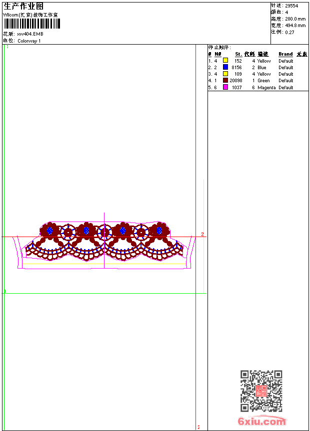 - emb花版参数: 大小:129.50 KB / 尺寸:495*280[毫米] / 针数:29554针 / 线色:4 / 格式:emb / 版本:9