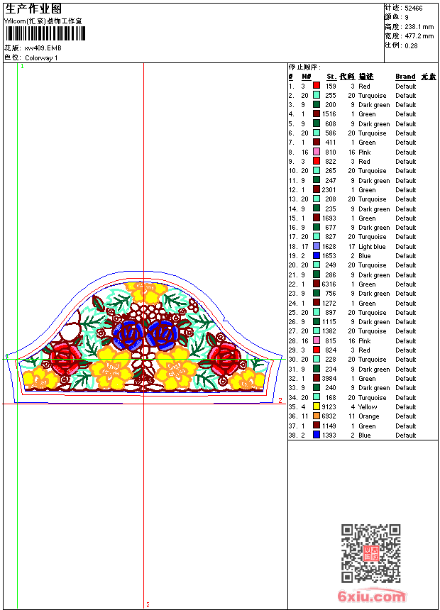 - emb花版参数: 大小:411.50 KB / 尺寸:477*238[毫米] / 针数:52466针 / 线色:9 / 格式:emb / 版本:9