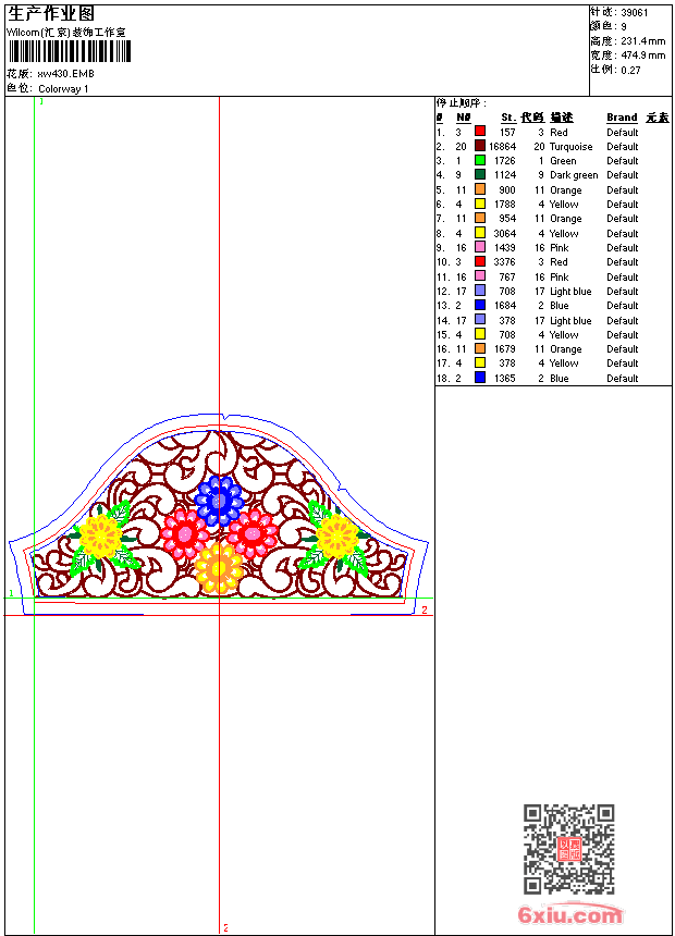 - emb花版参数: 大小:330.50 KB / 尺寸:475*231[毫米] / 针数:39061针 / 线色:9 / 格式:emb / 版本:9