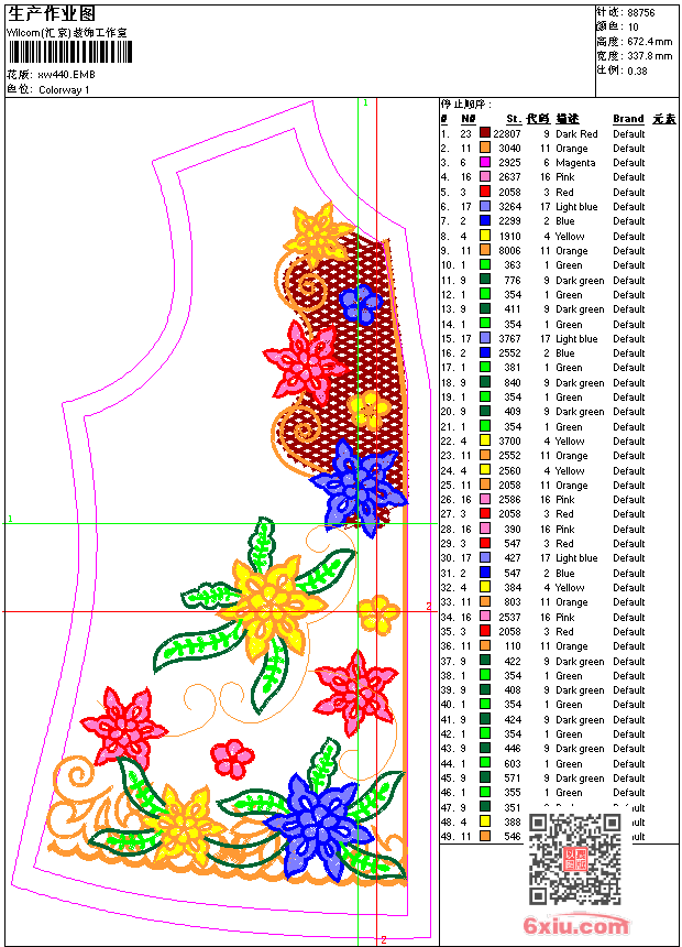 - emb花版参数: 大小:397.00 KB / 尺寸:338*672[毫米] / 针数:88756针 / 线色:10 / 格式:emb / 版本:9