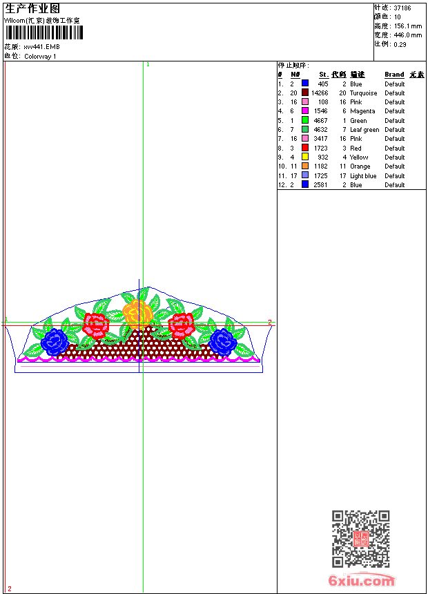 - emb花版参数: 大小:165.00 KB / 尺寸:446*156[毫米] / 针数:37186针 / 线色:10 / 格式:emb / 版本:9