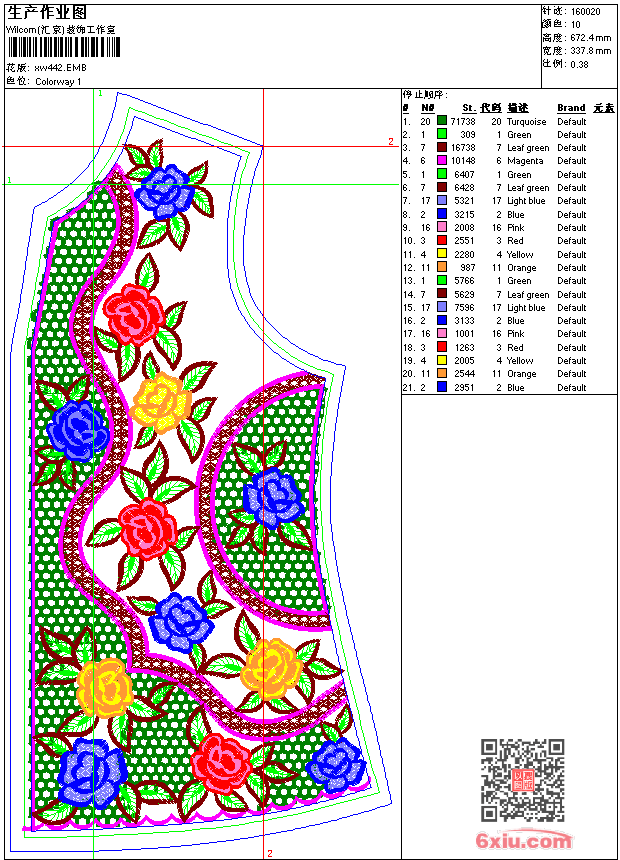 - emb花版参数: 大小:523.50 KB / 尺寸:338*672[毫米] / 针数:160020针 / 线色:10 / 格式:emb / 版本:9